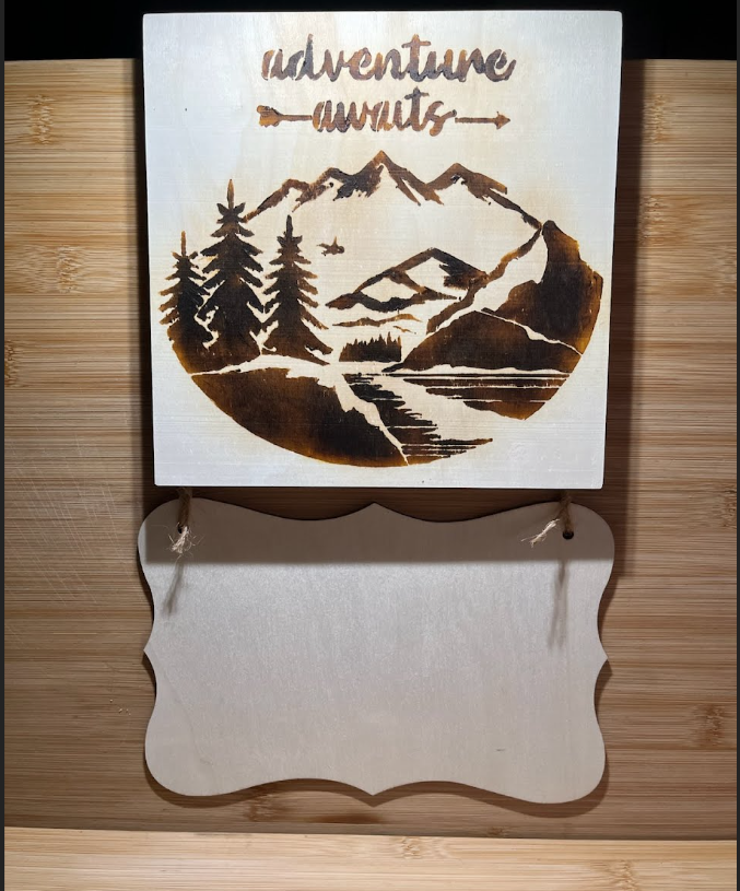 Order wood burning canvas #1 down below here, I can add more wood burning designs in the above area with letters choose letters down below, each one of those is just $12 on Facebook marketplace. Go to order button once done choosing. The picture is our example! Thank you!